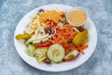 Lots and lots of lettuce, tomato, and other fresh in-season veggies & dressing